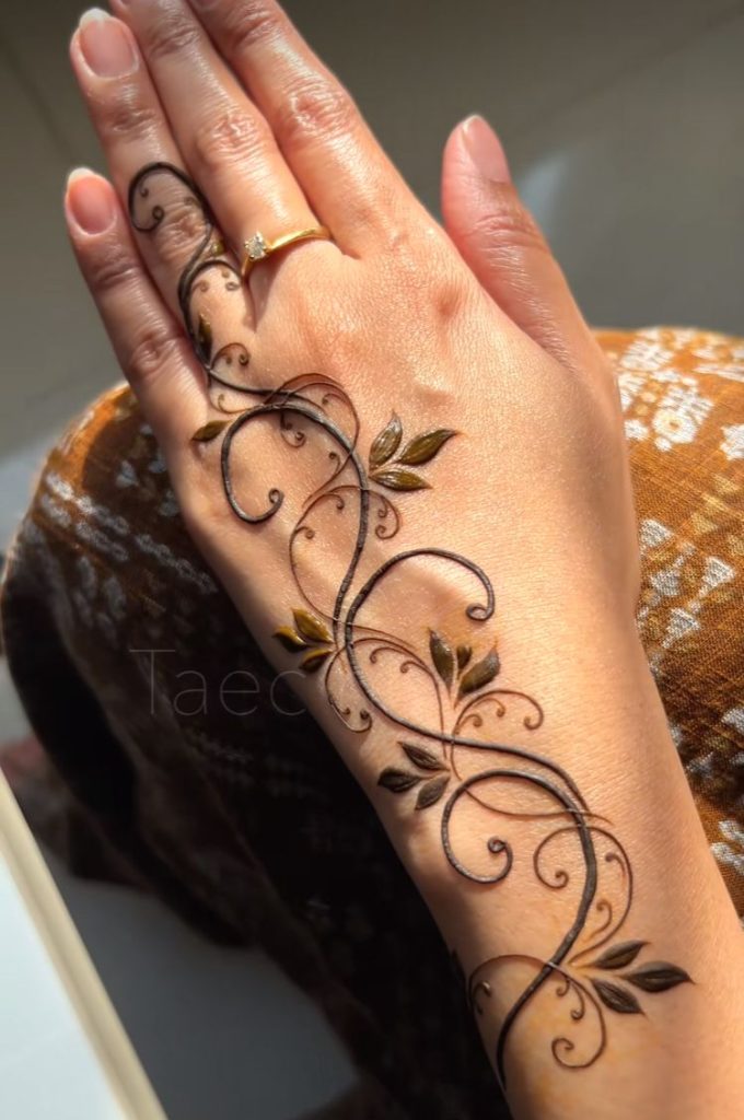 - Graceful vines with leaves and buds trailing from the wrist to a finger.