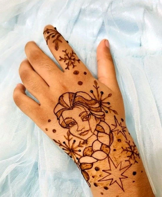 Kids have a special style and taste. Their mehndi designs should show off their fun personalities. From beloved Disney princesses to cute animals and sparkly glitter, there is a cartoon mehndi design for every child.