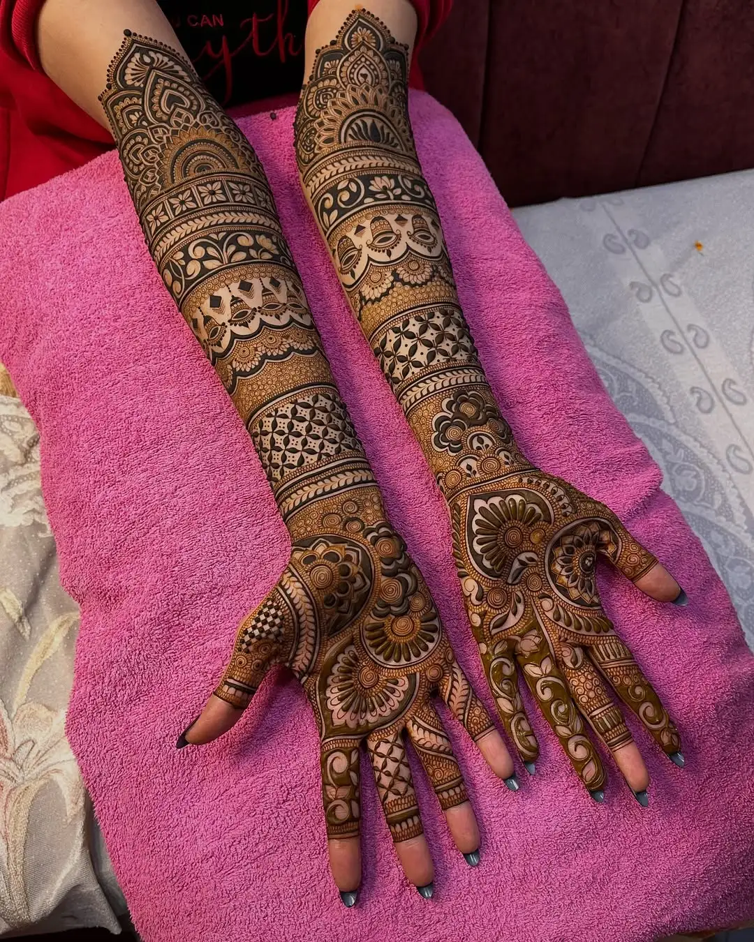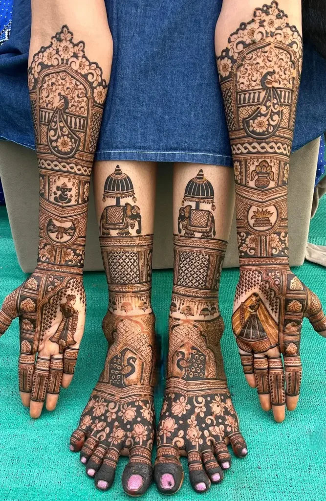 - Embrace traditional motifs like elephants and modern patterns like geometric mehndi.