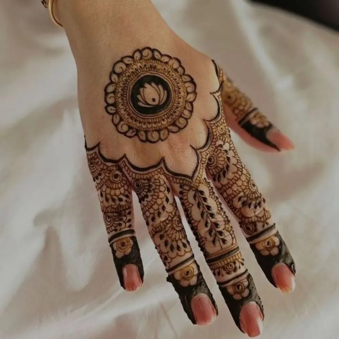 The latest trends in Mehndi designs in India include elegant floral patterns, bold mandalas, geometric shapes, and personalized bridal themes. Raksha Bandhan Mehndi designs are also trending, featuring minimal yet festive motifs like rakhis, flowers, and traditional symbols that celebrate the bond between siblings.