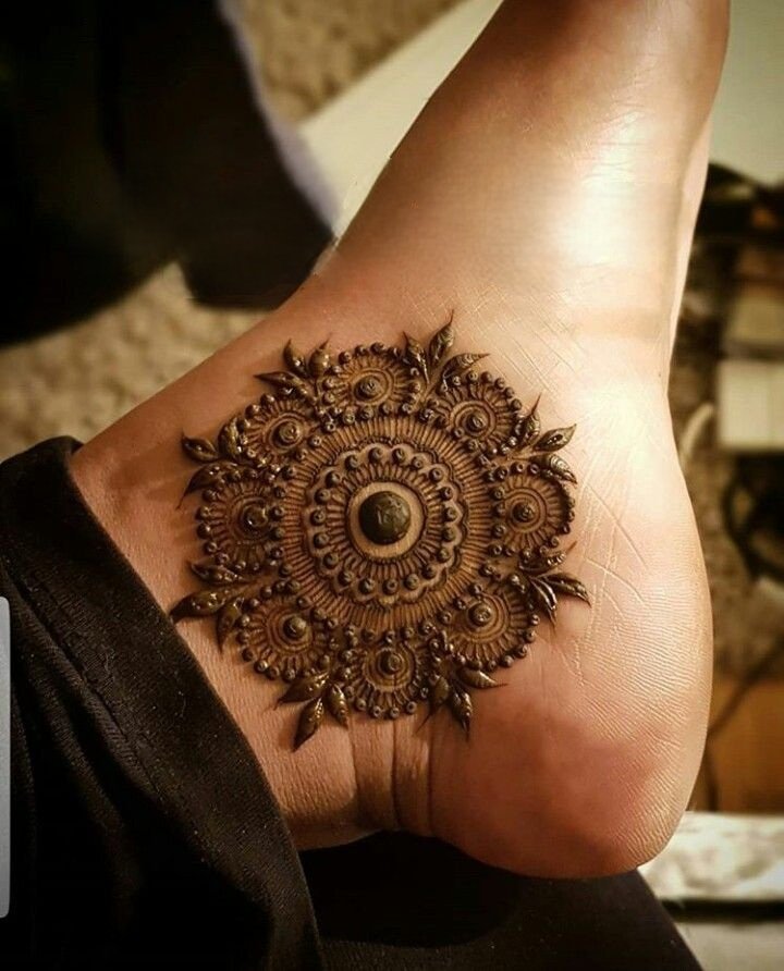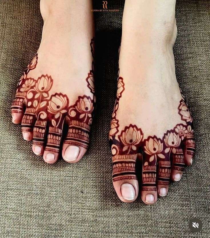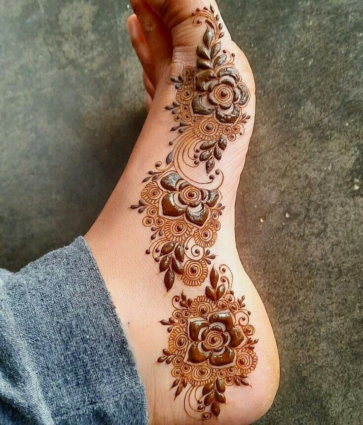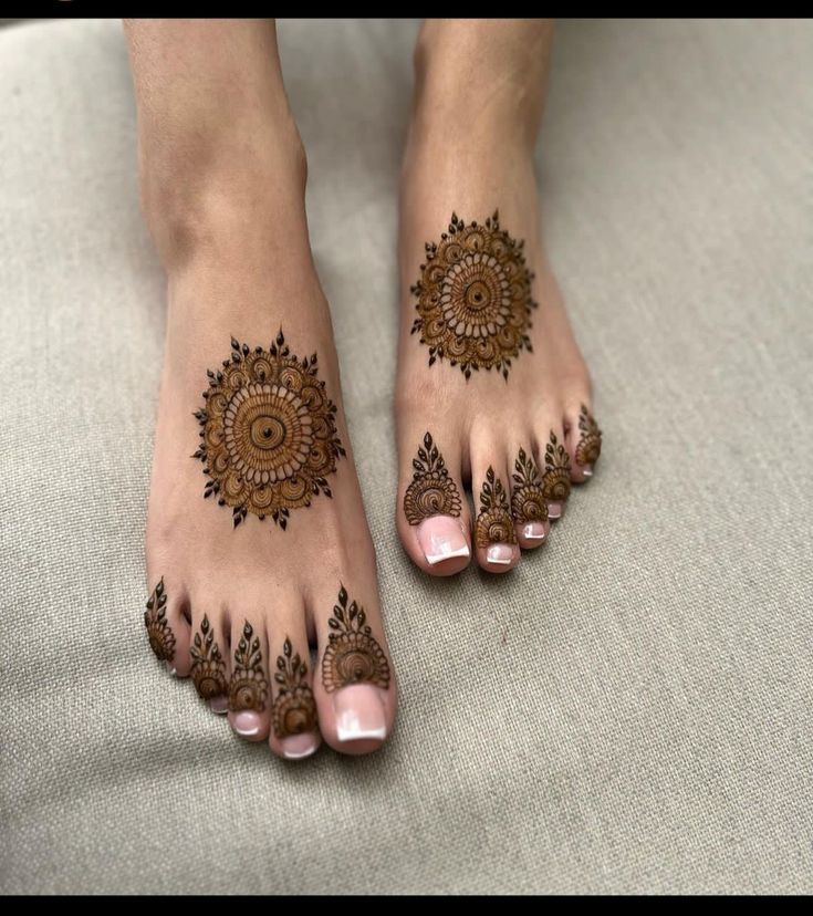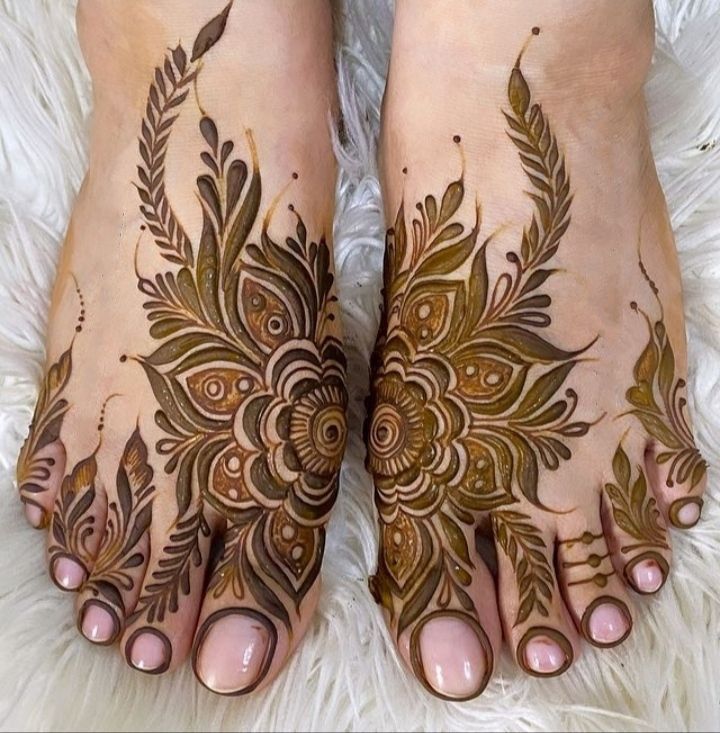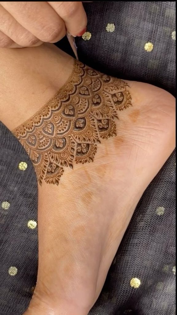 Mandala mehndi designs have a round and even look that many people love. This makes them a good pick for feet mehndi. These detailed circles sit in the center of the feet and give off a calm, balanced style. They are a nice mix of art and tradition.