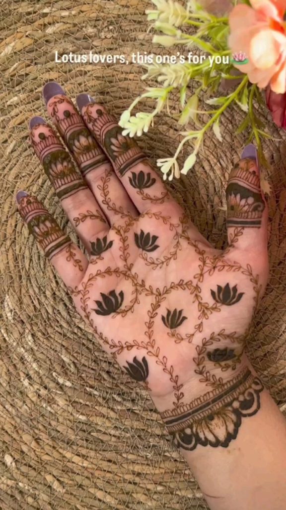 3. Elegant Lotus Inspired Flower Mehndi Bridal Designs