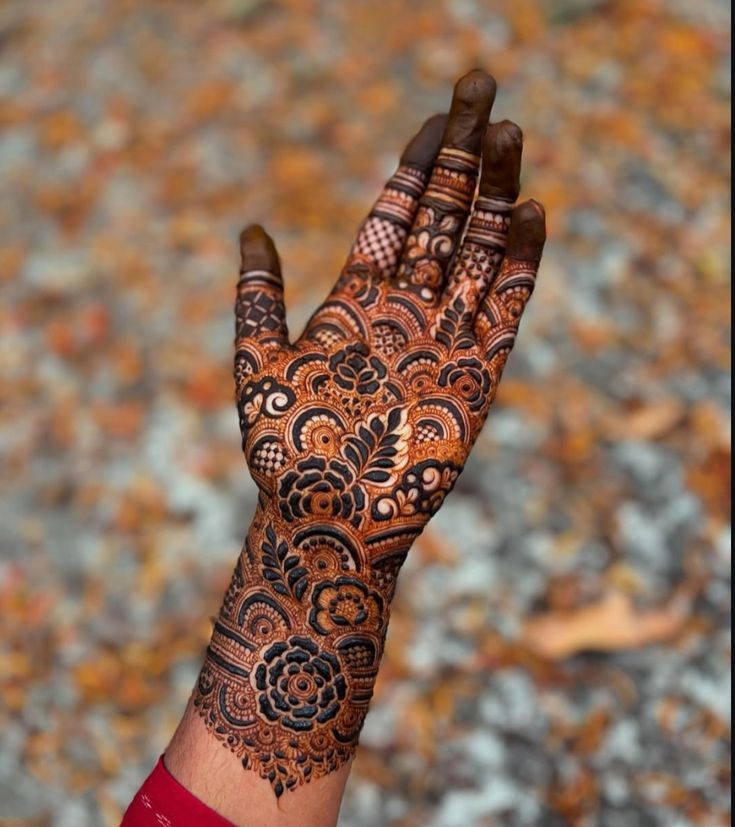 The rose motif is a perennially popular choice in henna designs, and for good reason. Symbolizing love, romance, and beauty, the rose adds a deeply meaningful and romantic touch to any mehndi look. These floral motifs are especially popular among modern brides who want to blend tradition with contemporary elegance. The intricate patterns of rose petals can be adapted to create both bold and delicate designs.