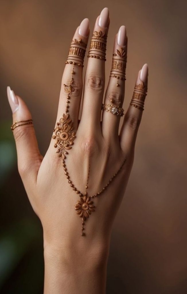 This style allows for a lot of creativity. You can opt for a simple band or a more heavily detailed cuff, depending on your preference. Combining a bracelet pattern with simple finger mehndi designs creates a balanced and trendy look that is perfect for any modern celebration.