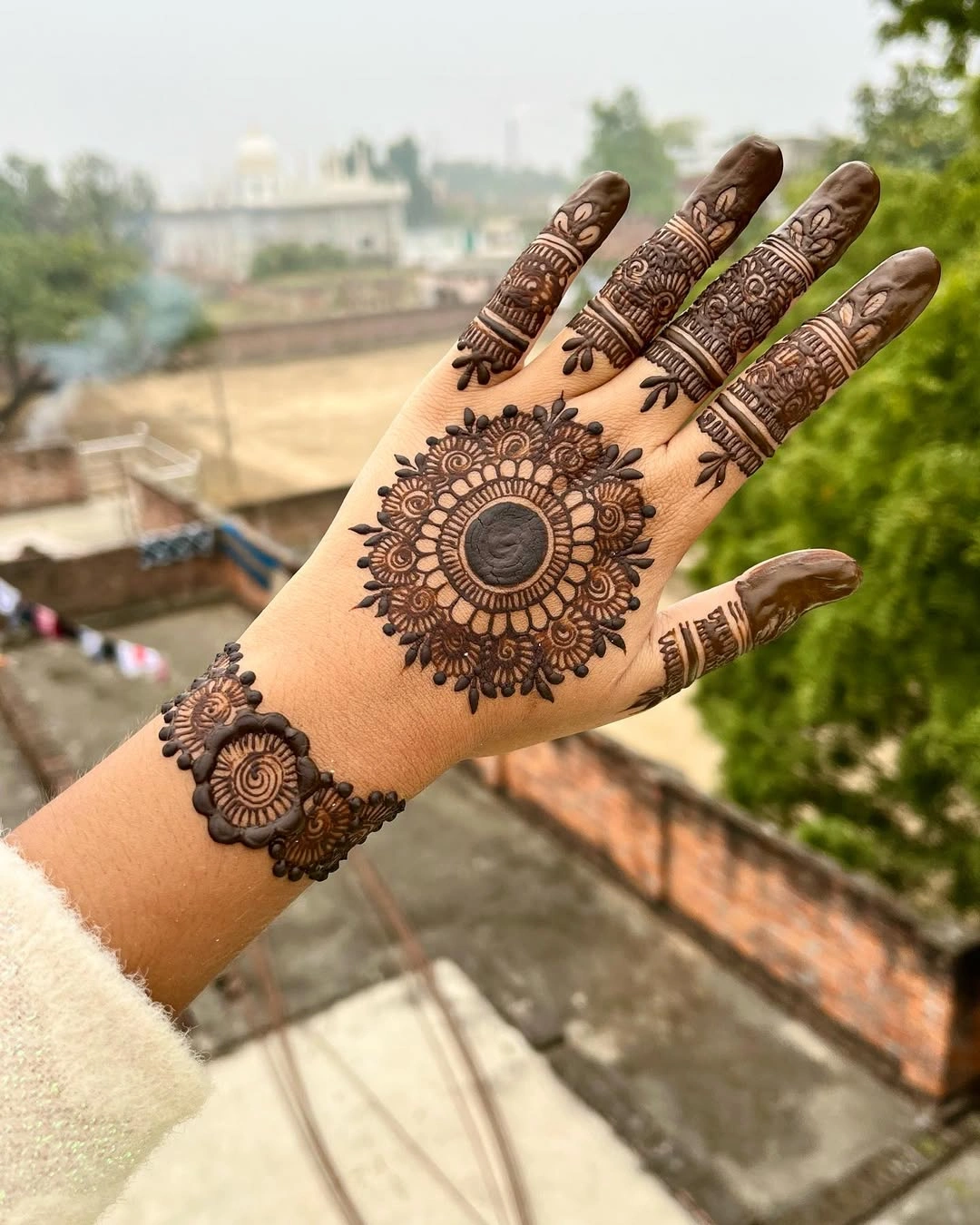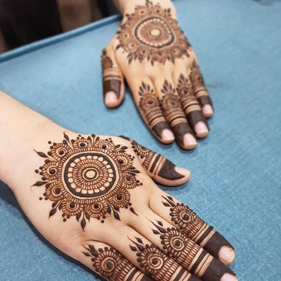 - These patterns are designed in circular mandala forms, enhancing the elegance of the hands with intricate art.