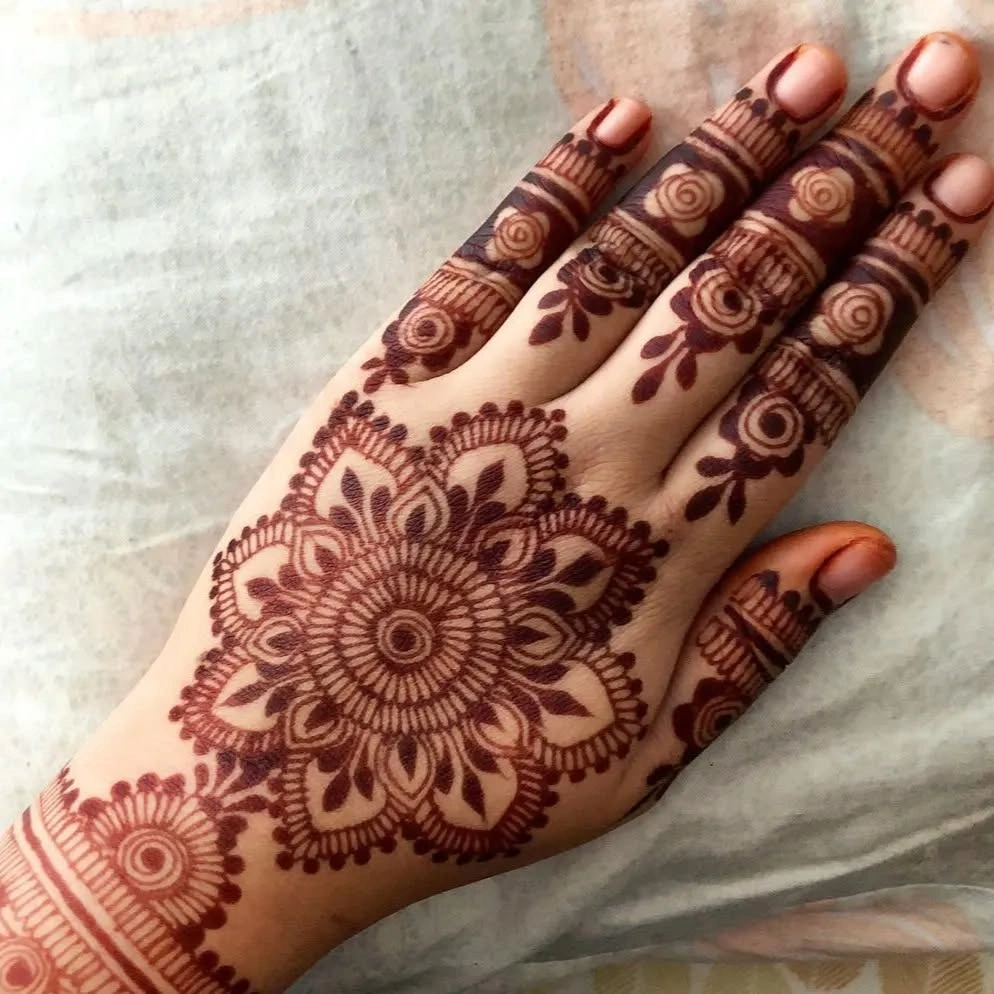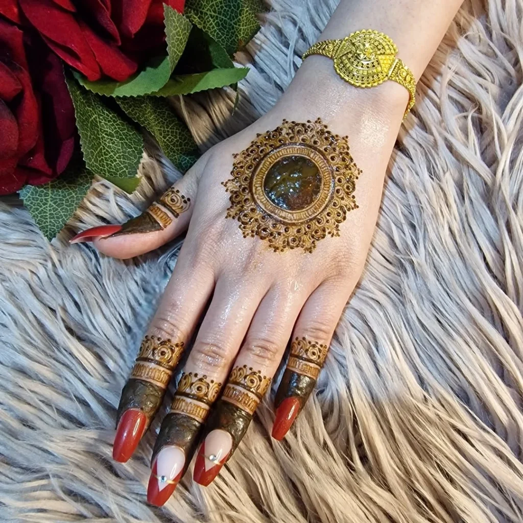 To choose the best Gol Tikki mehndi design, think about the event and what you like. For simple gatherings, you can go for a basic henna pattern with nice details. For weddings or big celebrations, choose detailed mandala designs that are bold and fancy.