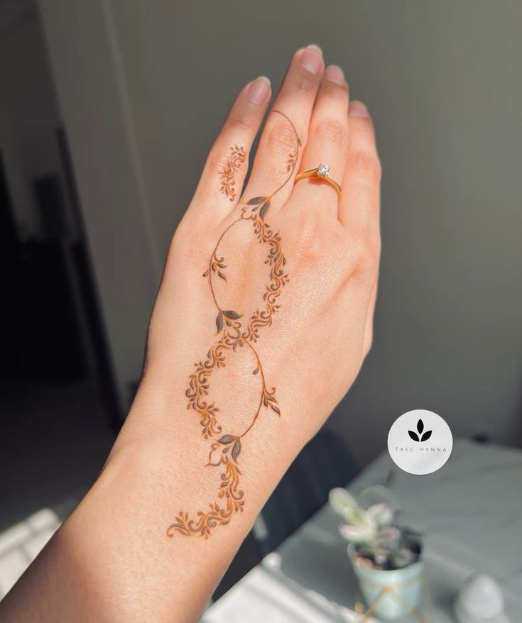 Often, these vines incorporate a tiny floral motif or small leaves, adding a touch of nature-inspired beauty. The key to this design is its simplicity; it doesn’t aim to cover the skin but rather to adorn it with a hint of artistry. The flowing pattern complements the natural curves of your hand, adding a layer of elegance.