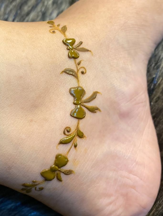 These designs can be simple bands with dots and lines, or they can incorporate tiny floral or leafy patterns for added charm. You can also add a small trail extending to one of the toes, connecting the anklet with the rest of the foot. The leaves and vines can symbolize growth and prosperity, adding a meaningful touch.