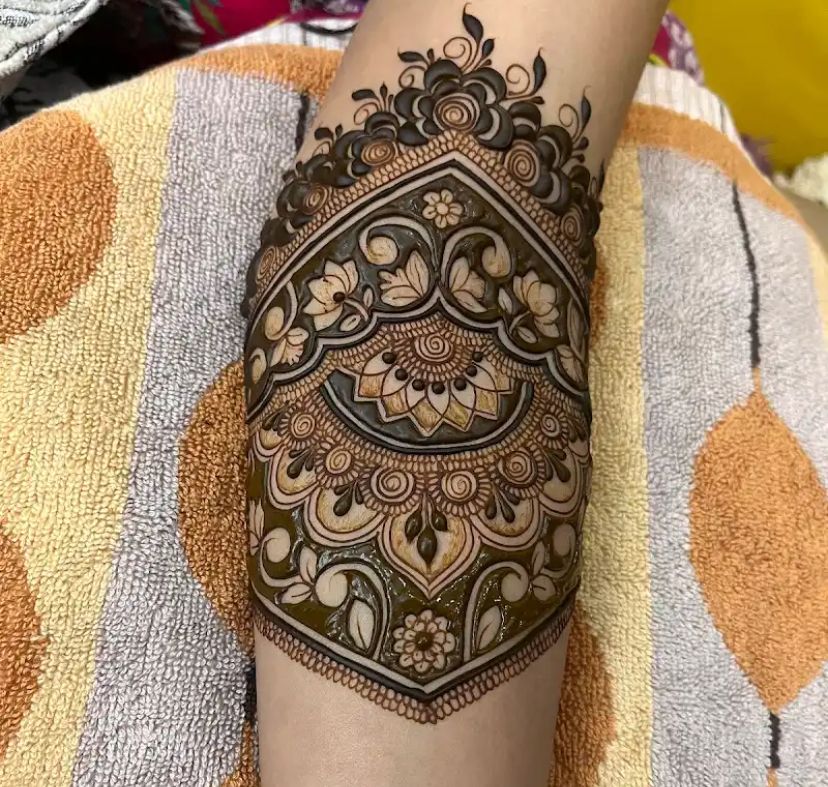 You can create a simple yet captivating mehandi design by drawing a circular flower and adding smaller details like dots and swirls around it. The repetitive nature of mandala patterns helps you practice control and consistency with your henna cone. This is a fantastic way to create something impressive in no time.
