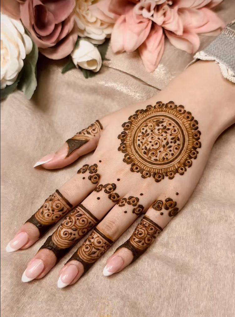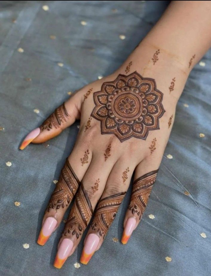 For a classic look, focus on a single, bold mandala on the palm or back of the hand. This approach is not only quick but also results in a striking and traditional henna look that is perfect for any celebration.