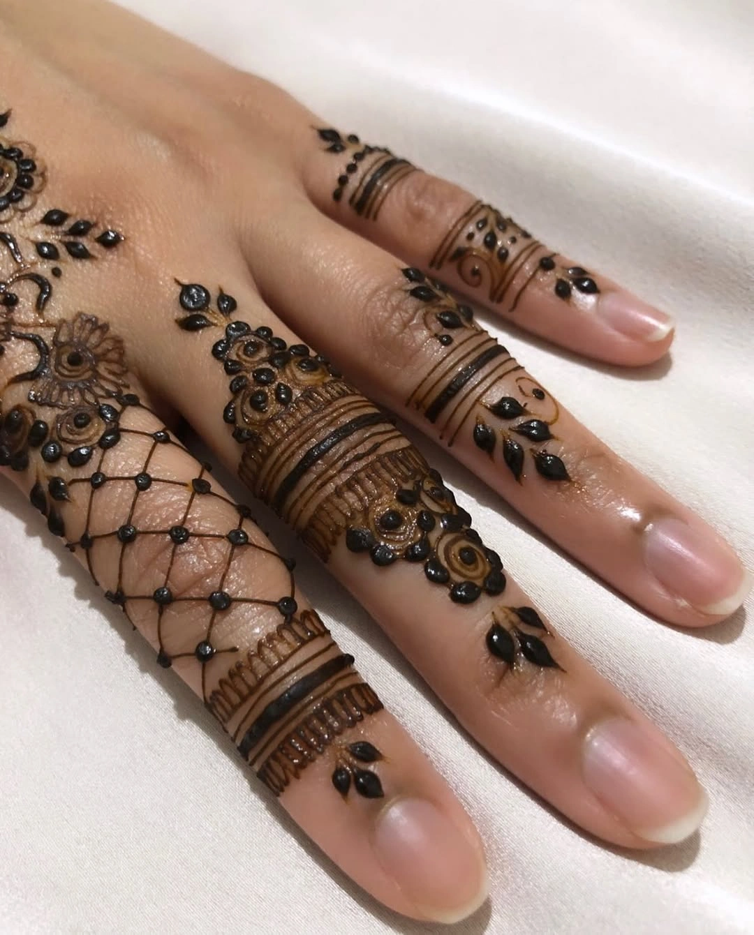 - From small flowers to intricate patterns, these mehndi designs celebrate artistry while keeping the ring finger in focus.