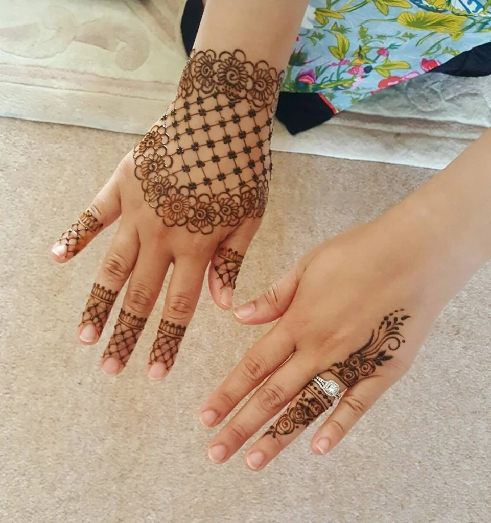 Of the many beautiful mehndi designs, this one shines because it mixes traditional beauty with modern style. Brides often bring the lace designs onto their hands to match their wedding outfits. It offers a nice mix of detail and fun.
