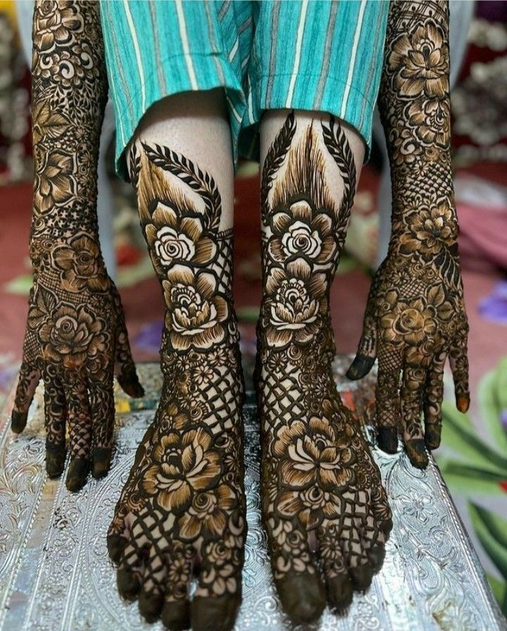 This trend is incredibly popular across India, with top mehndi artists in Delhi and Hyderabad creating breathtaking bridal looks. An intricate rose design for the feet is also a must-have for the complete bridal look. These patterns ensure the bride looks and feels exceptionally beautiful on her big day.