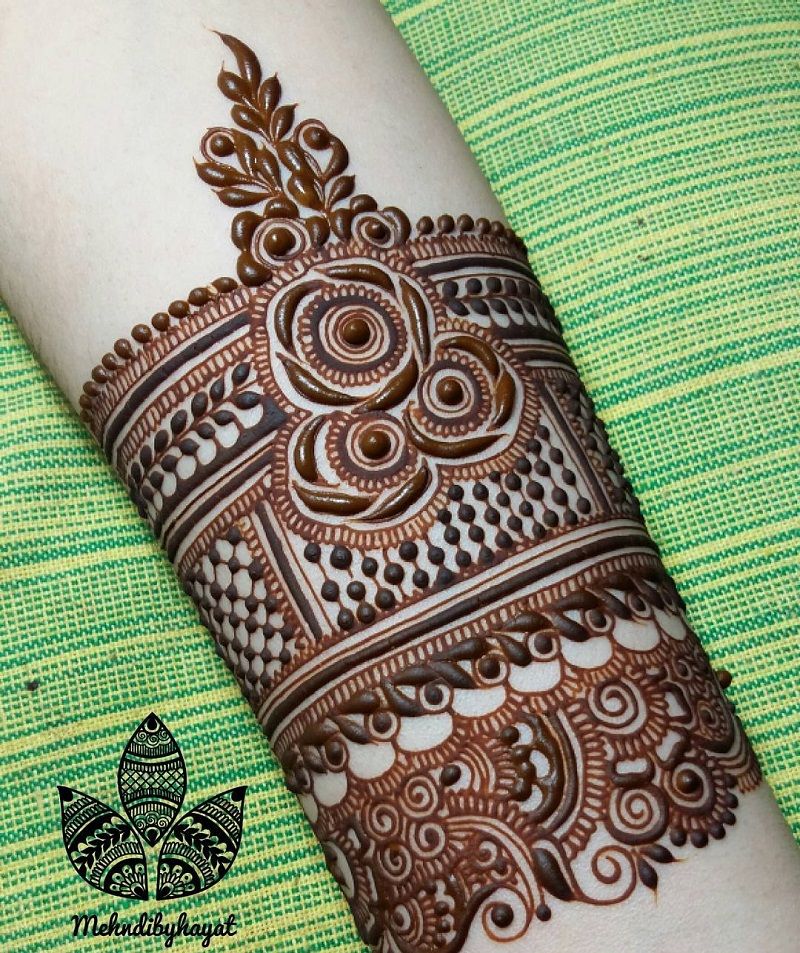 A major trend in the world of mehndi design is the band or bracelet style, and incorporating rose motifs into it creates a stunning effect. Imagine a delicate band of roses wrapping around your wrist like a piece of jewelry, or a chic line of small buds adorning one of your fingers. This style is modern, stylish, and perfect for those who want a unique and contemporary look. It provides the beauty of mehndi in a concentrated, impactful way.