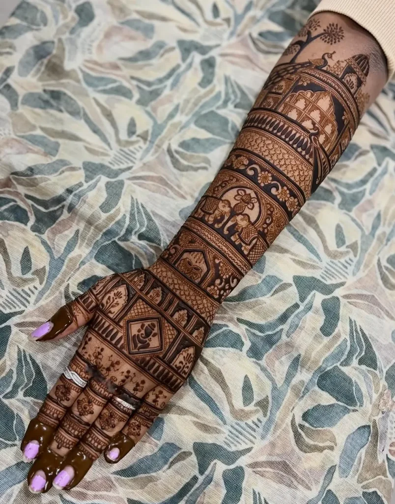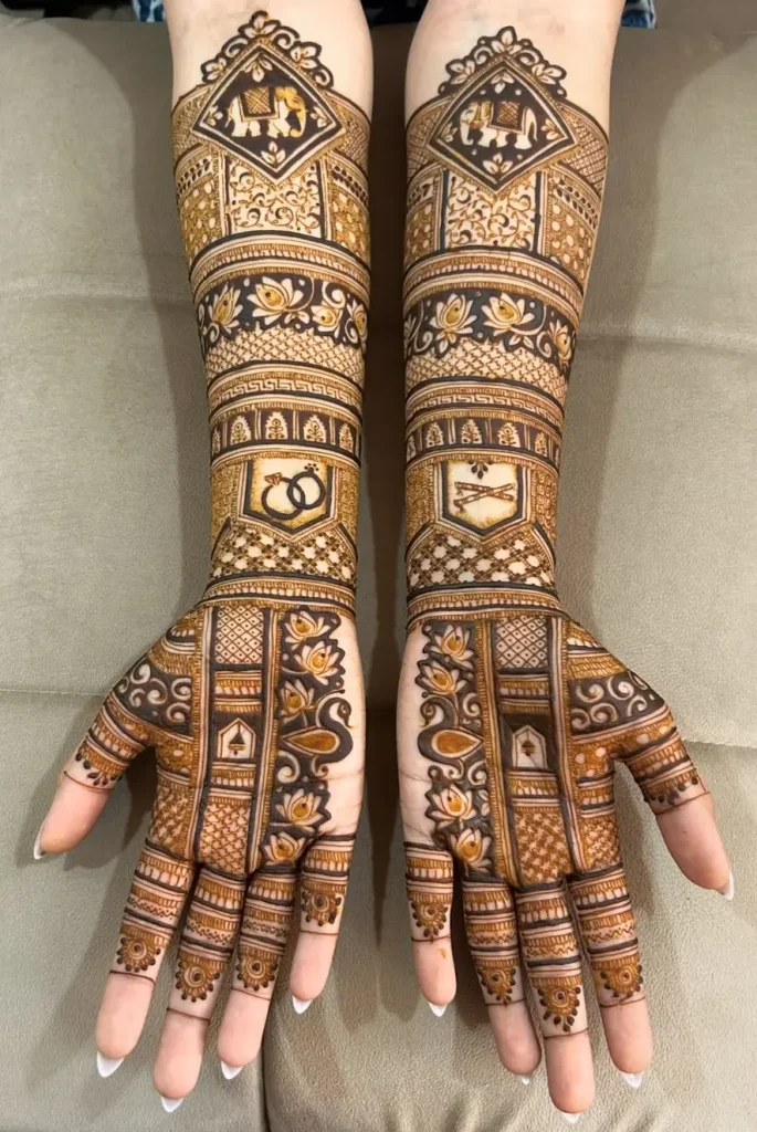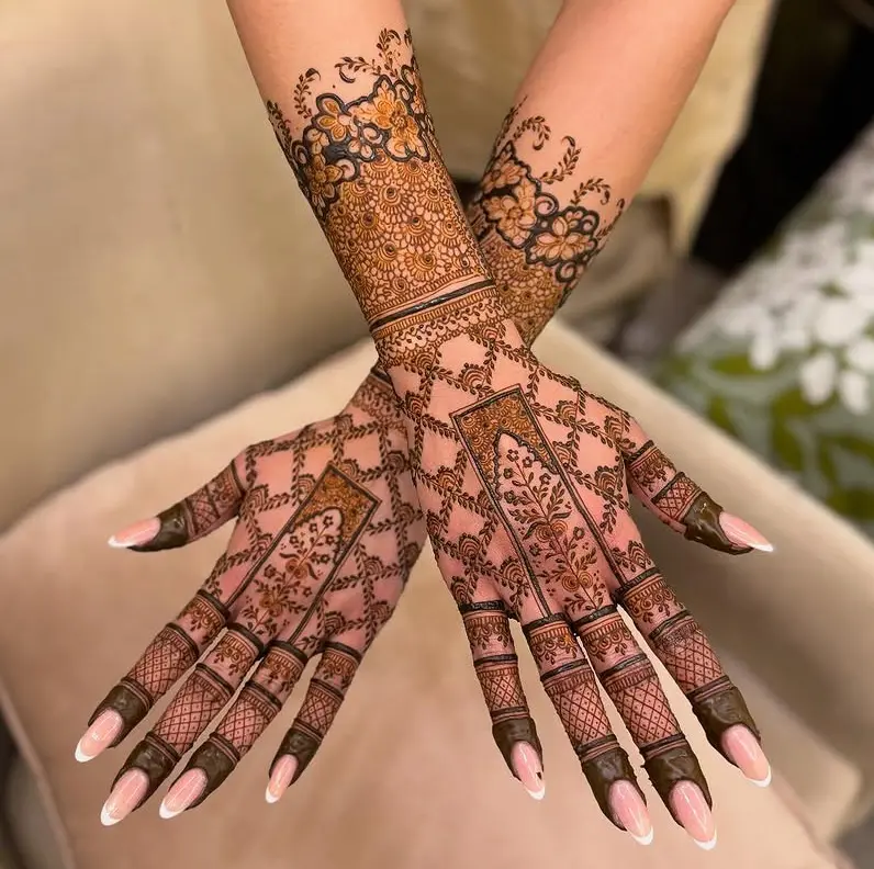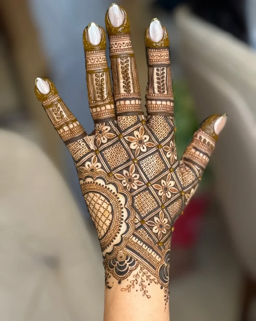 Mehndi is the old art of painting the body with henna. It keeps changing, revealing exciting new trends. This season, square mehndi designs are popular for those who want a mix of tradition and modern style. These designs combine sharp geometric shapes with the soft flow of traditional henna patterns. The result is stunning body art that really stands out.