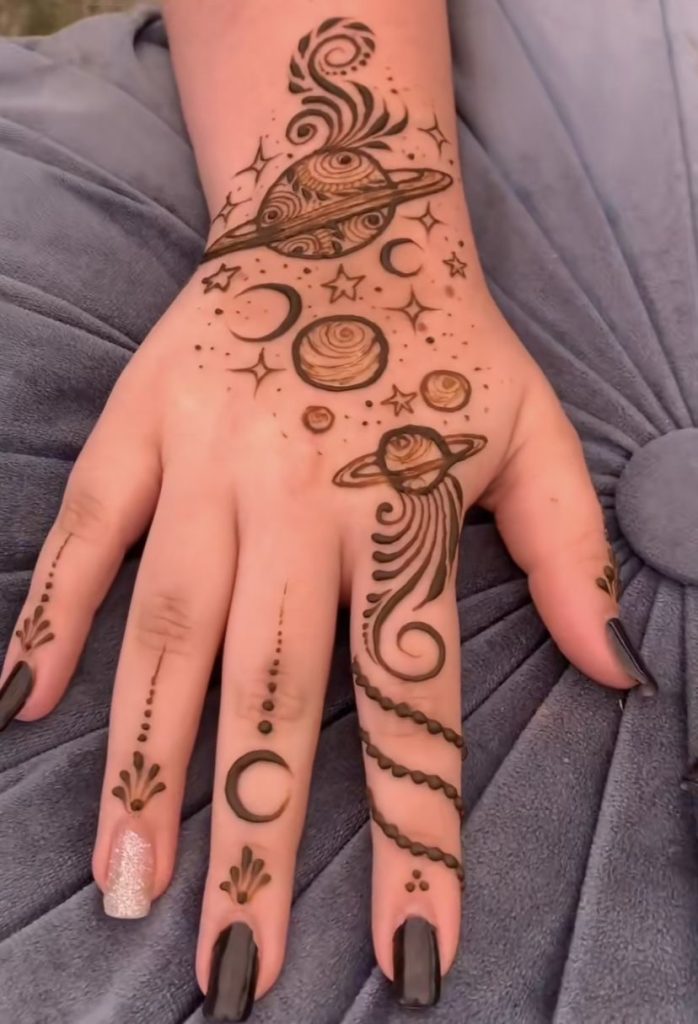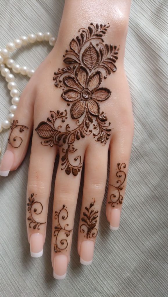 For beginners or parties, simple and quick designs are best. Minimalist patterns, small floral motifs, geometric shapes, or Arabic-style vines are excellent choices. Their simplicity makes them easy to apply, and they offer a stylish, tattoo-like look without requiring a lot of time or intricate detail.